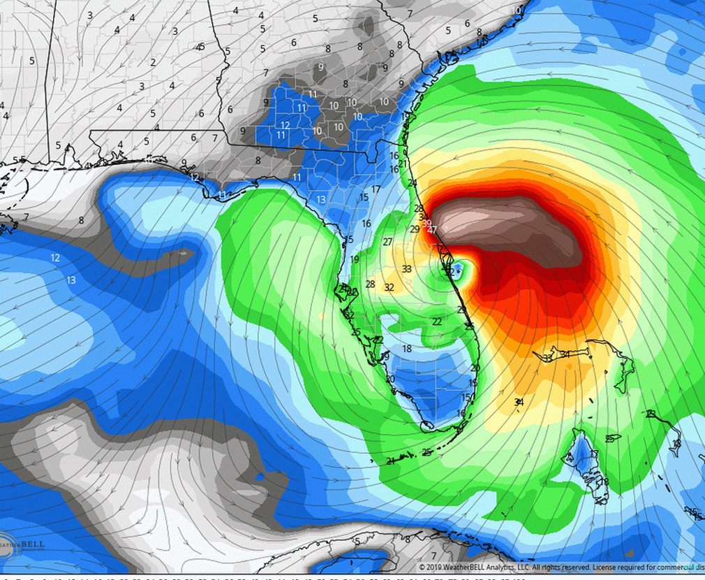 आखिरकार, एक ट्रफ मिडवेस्टर्न के माध्यम से दक्षिण-पूर्व की ओर बढ़ रही है संयुक्त राज्य अमेरिका डोरियन के करीब इतना बढ़ जाएगा कि यह उठाता है तूफान, और इसे उत्तर की ओर खींचता है, और फिर उत्तर-पूर्व की ओर। हालांकि, यह तेजी से लग रहा है कि यह मोड़ बहुत करीब आ जाएगा फ्लोरिडा तट के लिए।