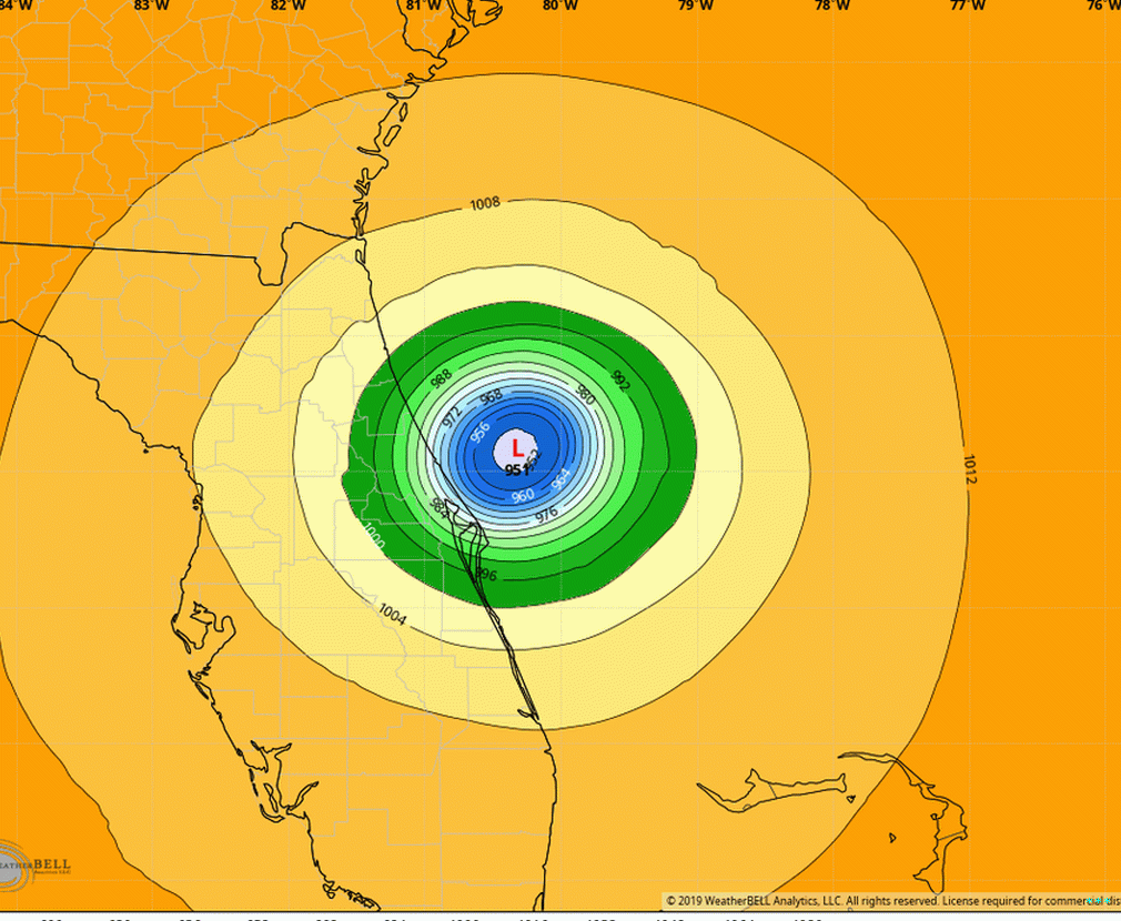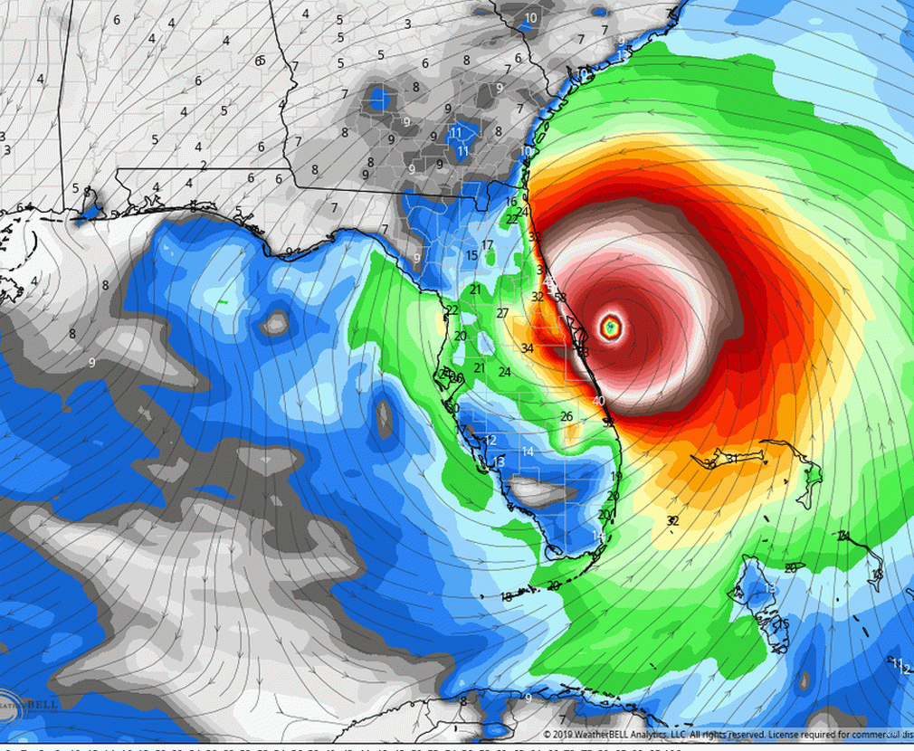 इन परिदृश्यों में से कुछ के तहत, डोरियन के नेत्रगोलक का बायां हिस्सा मंगलवार की शाम या बुधवार को आश्रय आता है, या लगभग इतना ही सुबह। उस समय सीमा के दौरान, राष्ट्रीय तूफान केंद्र डोरियन पूर्वानुमान अभी भी अधिकतम हवा की गति को बनाए रखने के लिए, 140mph सैफिर सिम्पसन पैमाने पर श्रेणी 4 तूफान का मूल्यांकन किया गया।